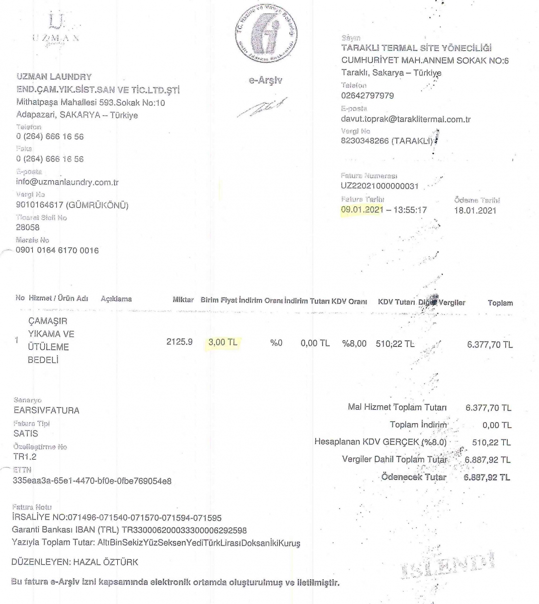 2021 Çamaşır Yıkama Hizmeti
